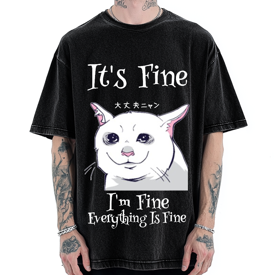 Jujutsu Cat Fight Kawaii Vintage Washed T-shirt