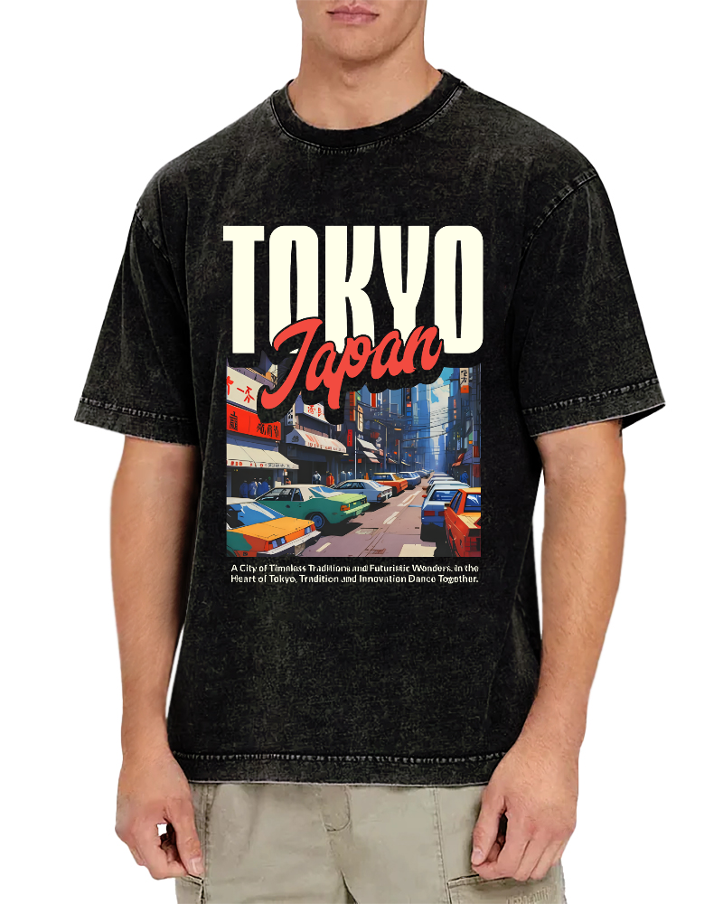Retro Style in Tokyo, Japan Vintage Washed T-shirt