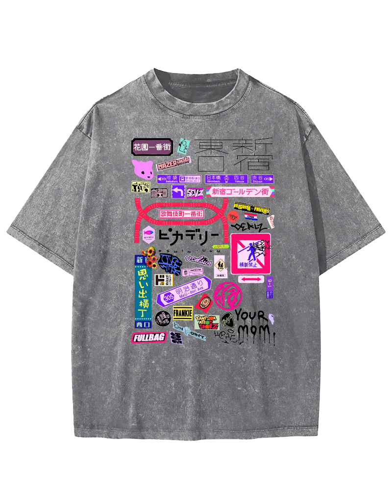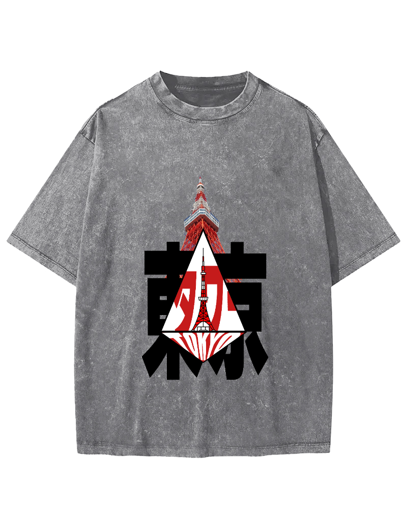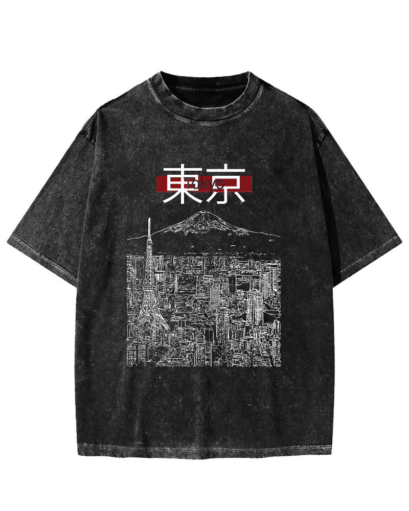 Tokyo City and Muji Mountain Vintage Washed T-shirt