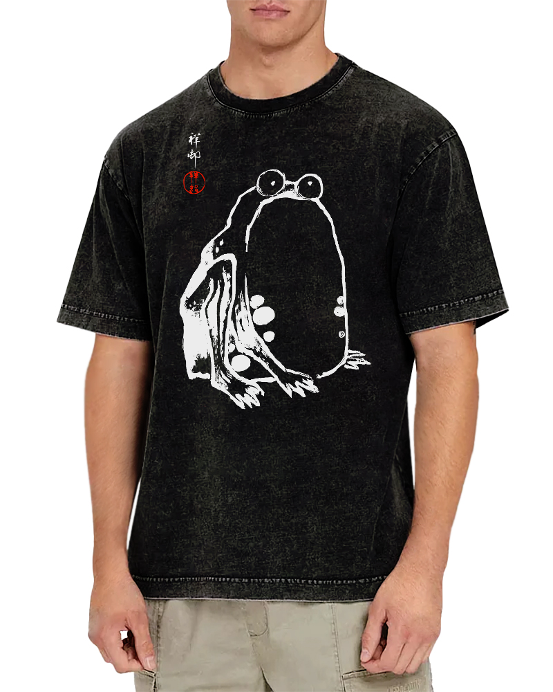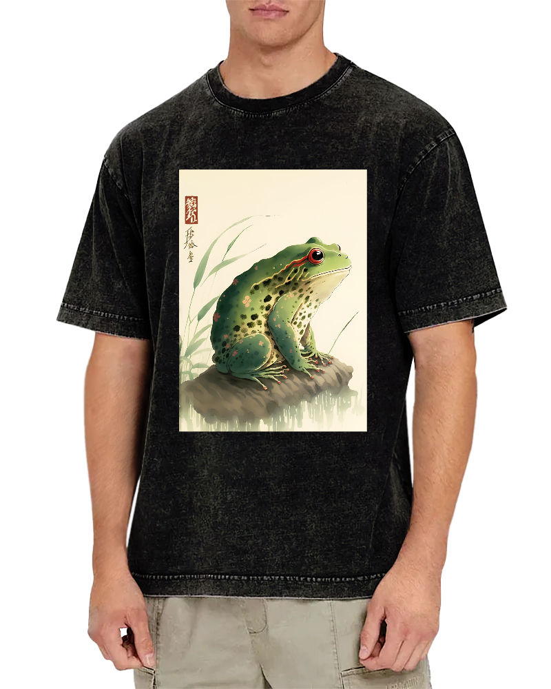 Five Star Recommended Frog Front And Back Printing Washed T-shirt