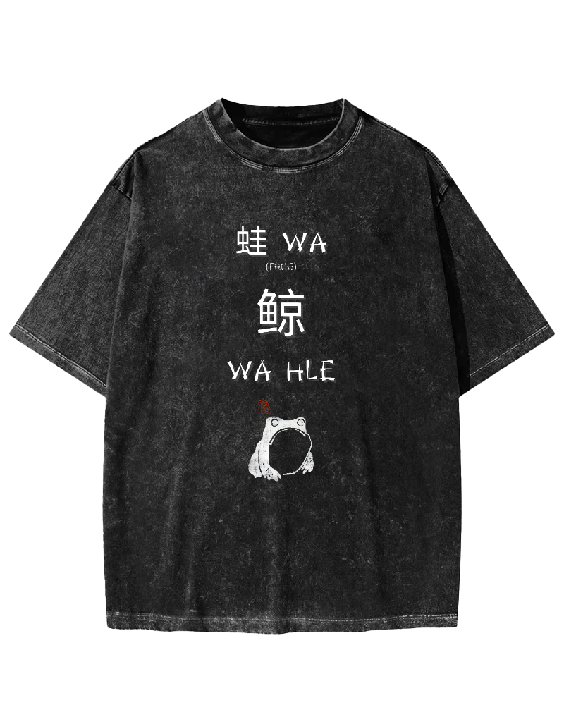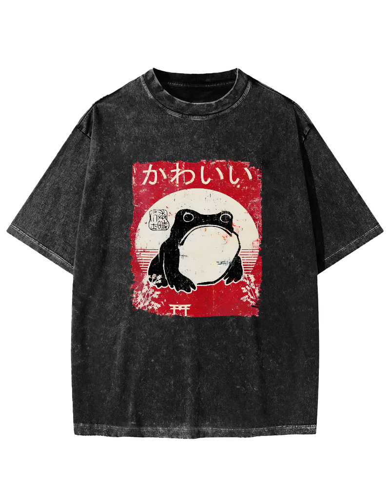 Am I The Drama Japanese Funny Frog Front And Back Printing Washed T-shirt