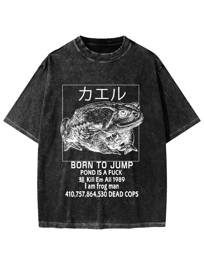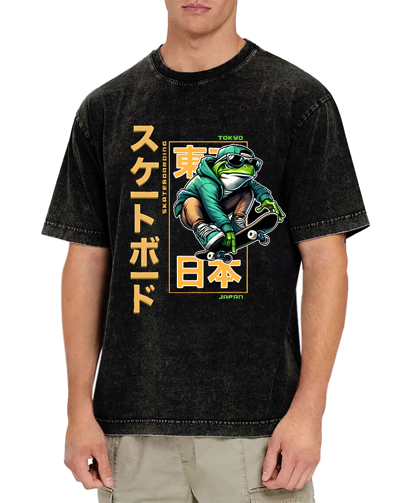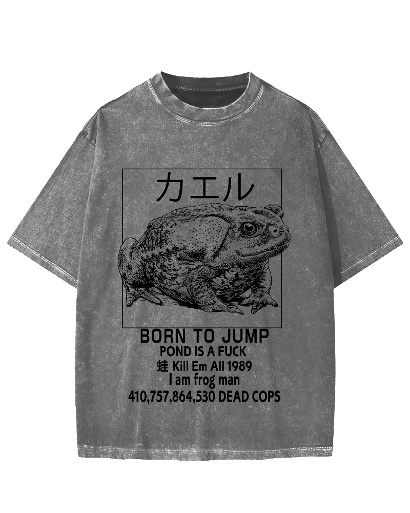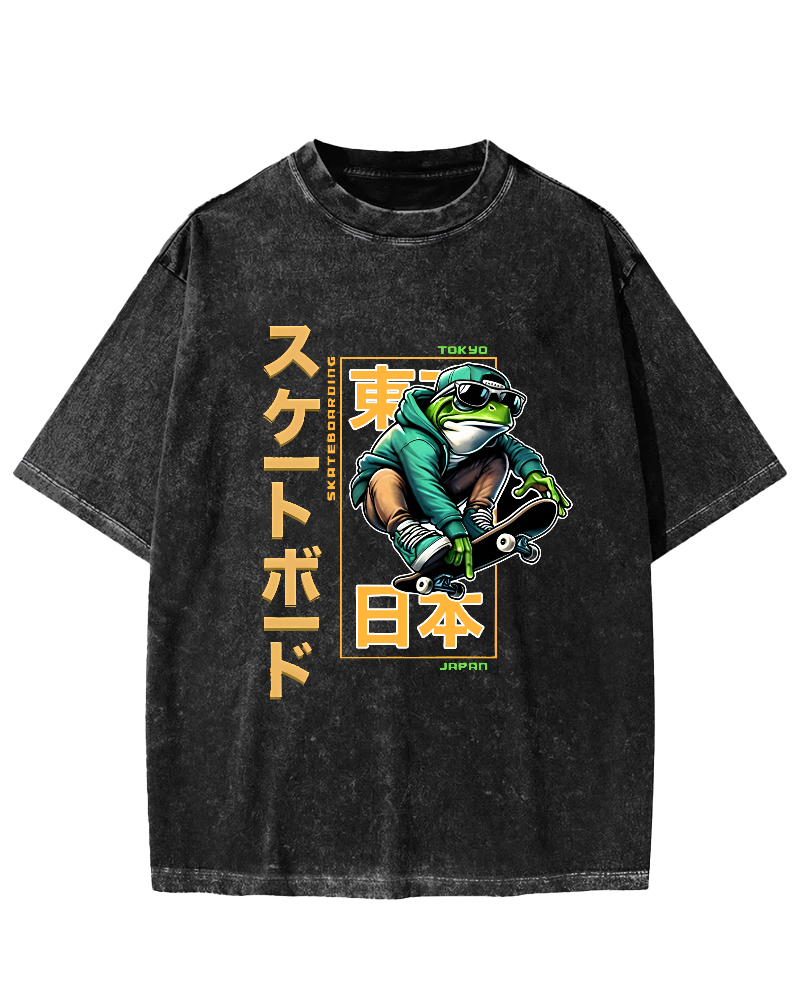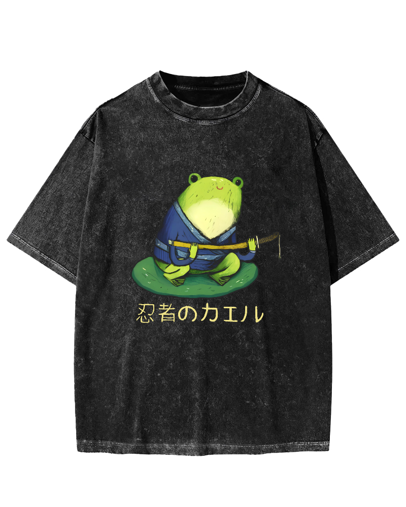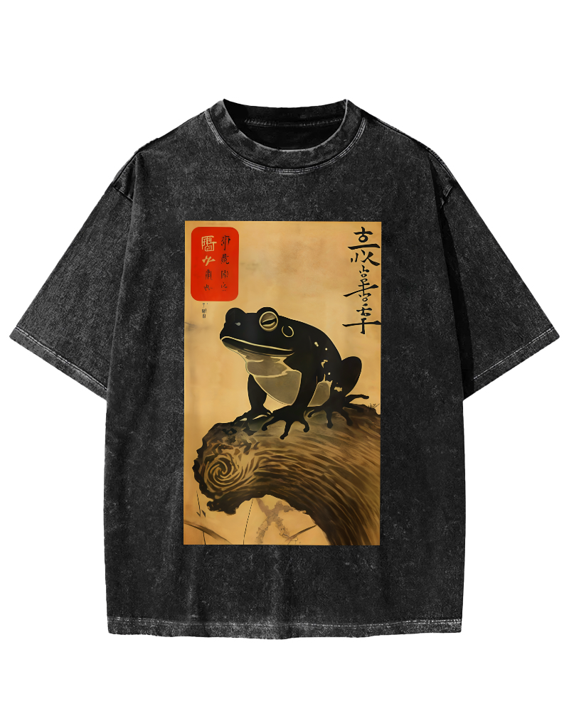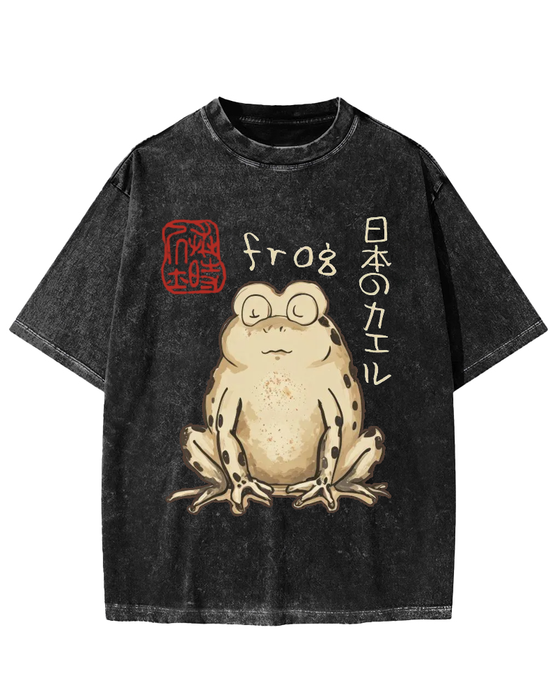 Frog Japanese Retro Style Vintage Washed T-shirt