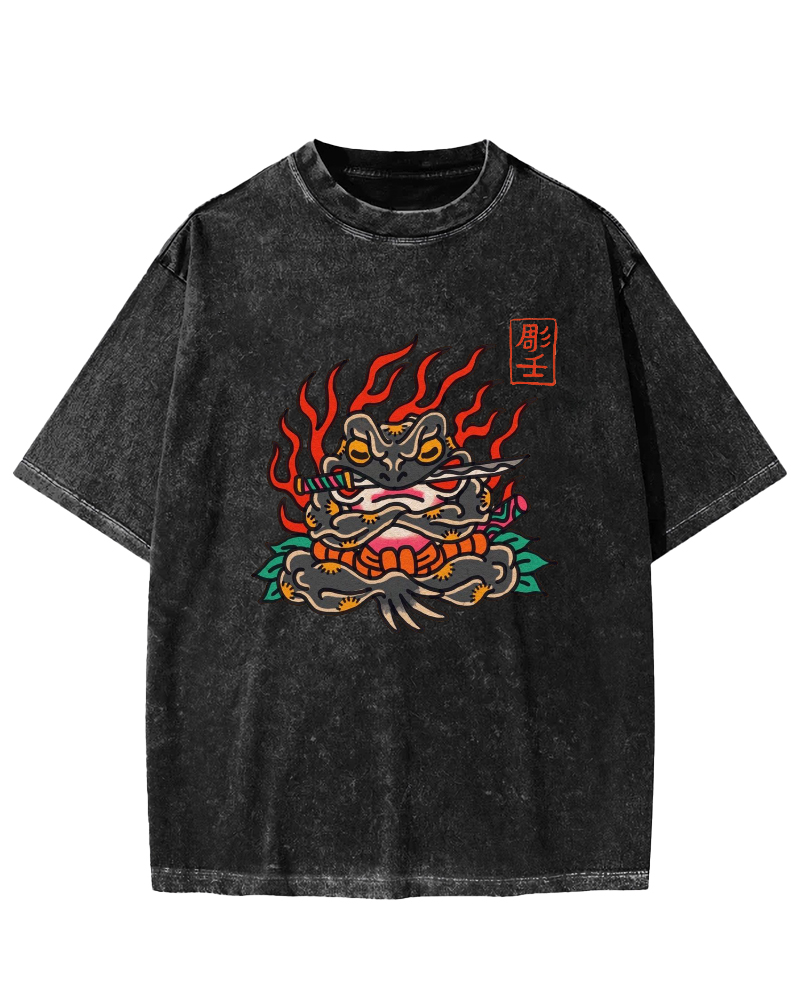 Japanese God Frog Retro Vintage Washed T-shirt