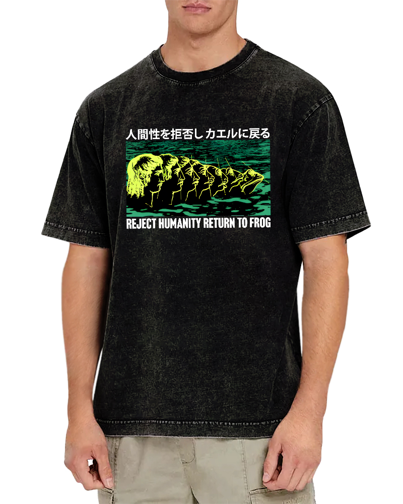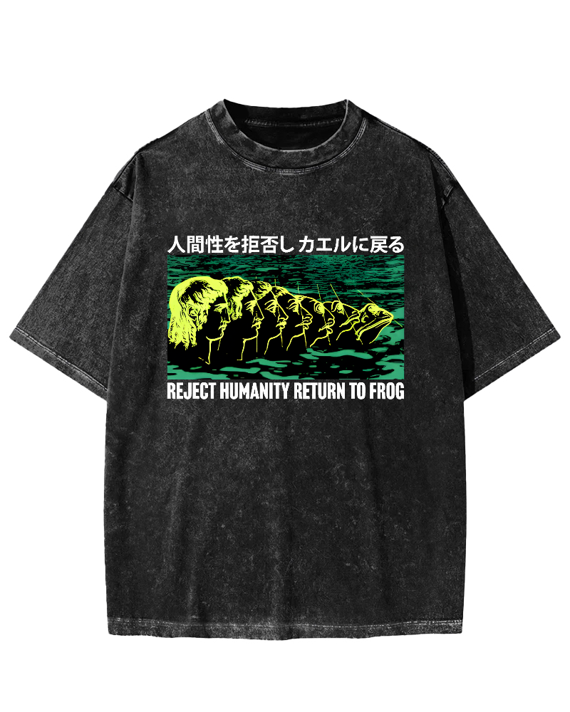 "Reject Humanity,Return To Frog" Vintage Washed T-shirt