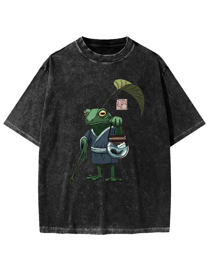 Frog Guardian Japanese Style Vintage Washed T-shirt