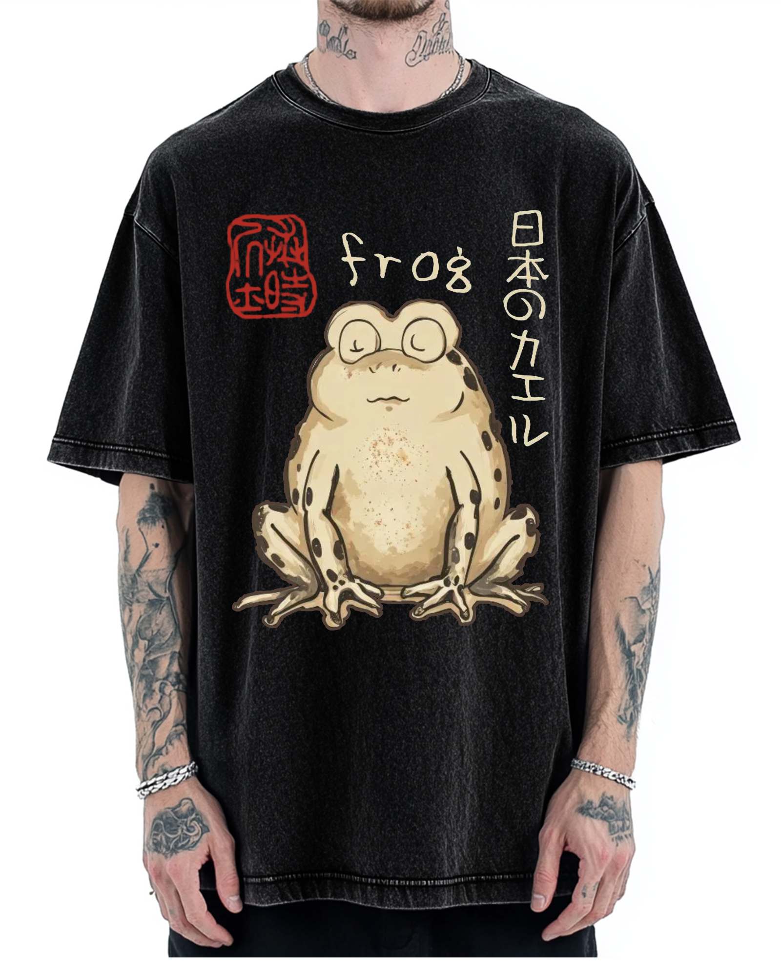 Drunk and Dreaming Frog, Japanese Style Vintage Washed T-shirt