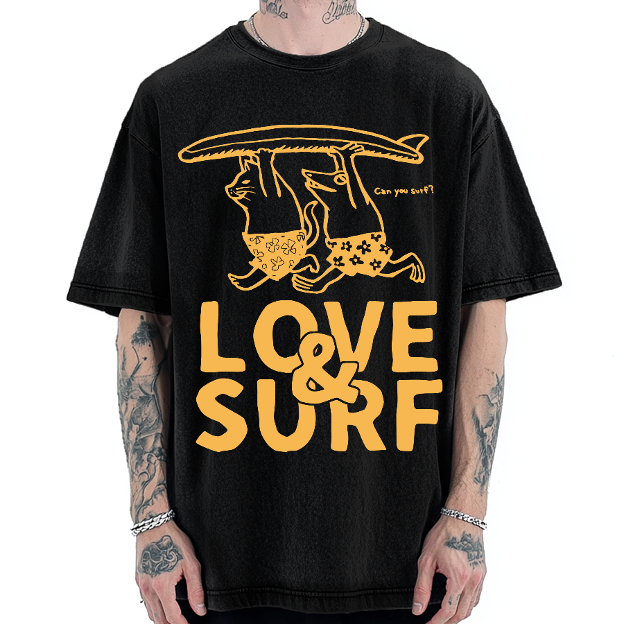 Love & Surf Cat and Frog Vintage Washed T-shirt