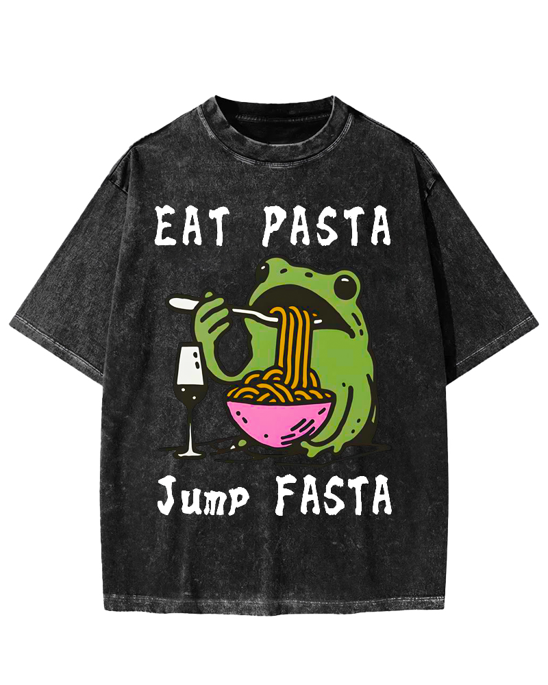 Eat Pasta Jump Fasta Funny Frog Vintage Washed T-shirt