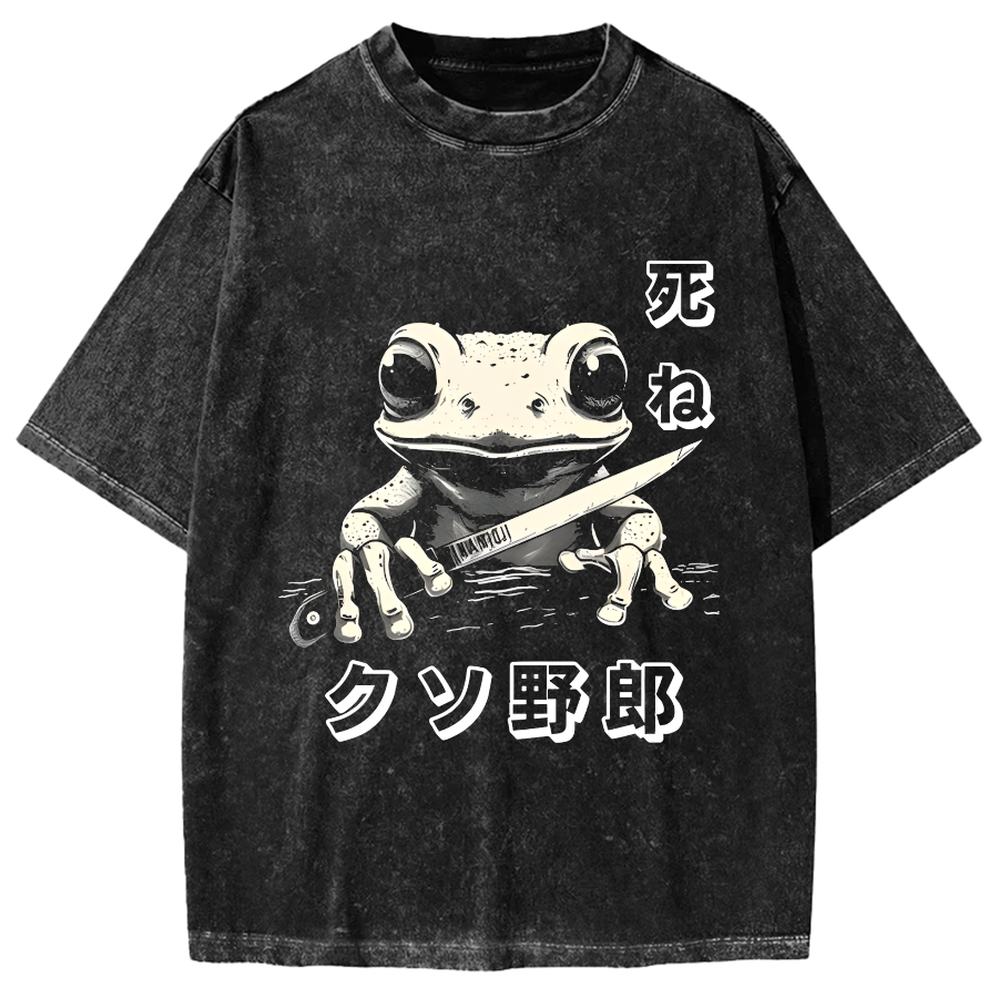 Funny Grumpy Japanese Frog Vintage Washed T-shirt