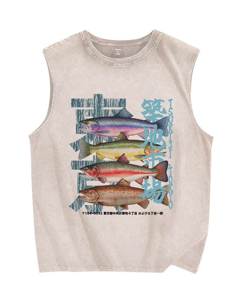 Raw Wheat Fish Market in Japan Vintage Distressed Washed Tank Top