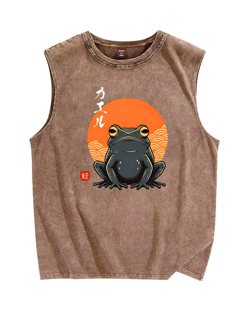 Drunk and Dreaming Frog, Japanese Style Vintage Distressed Washed Tank Top