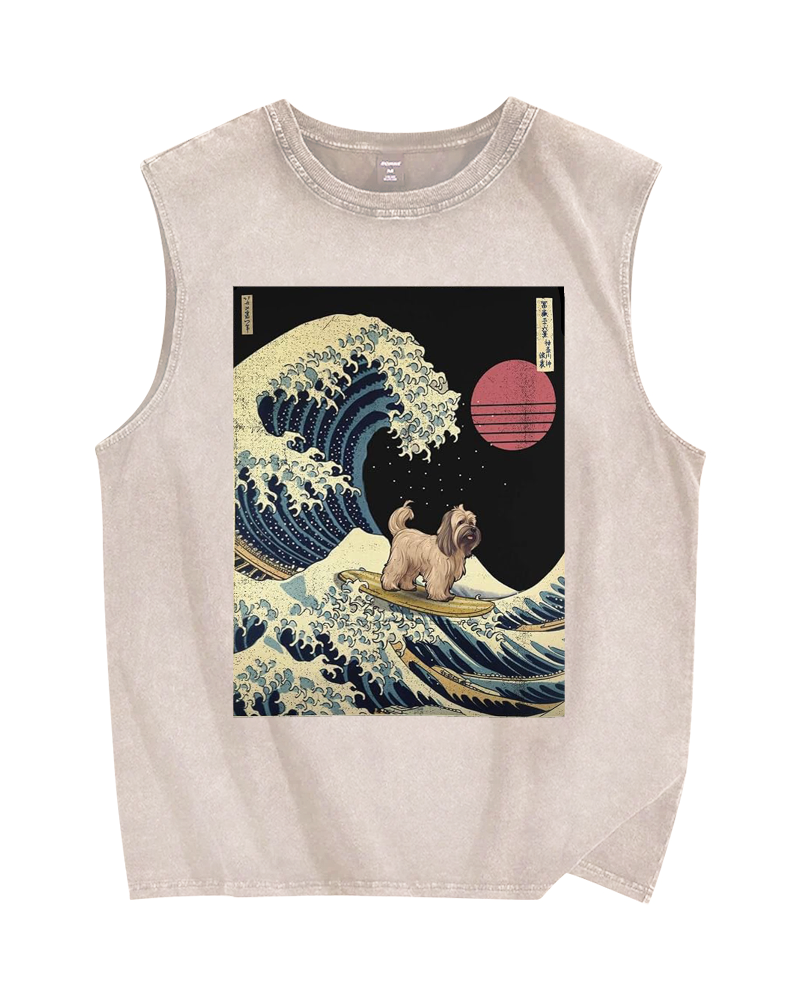 The Great Wave off Kanagawa Dog Vintage Distressed Washed Tank Top