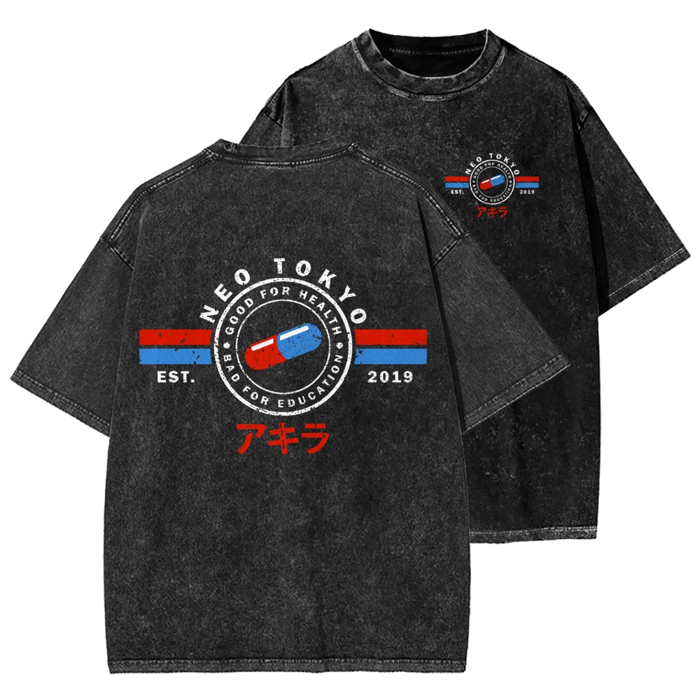 Neo Tokyo Akira Anime Front And Back Printing Washed T-shirt