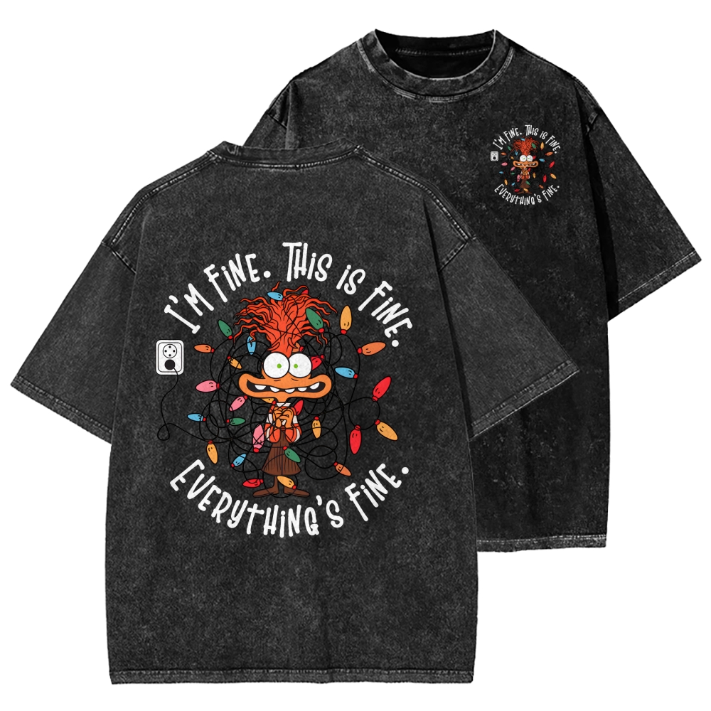 It's Fine This Is Fine Everything Is Fine Christmas Light Front And Back Printing Washed T-shirt