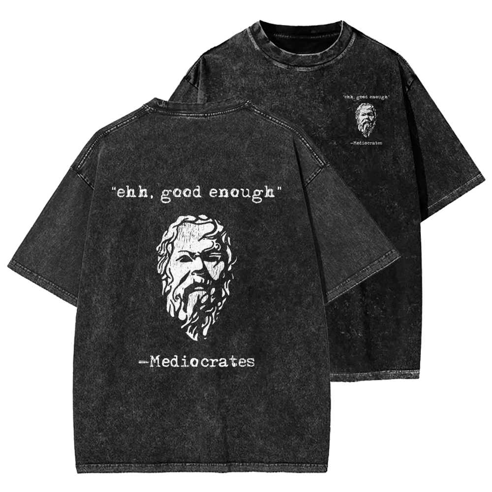 Mediocrates eh Good Enough Front And Back Printing Washed T-shirt