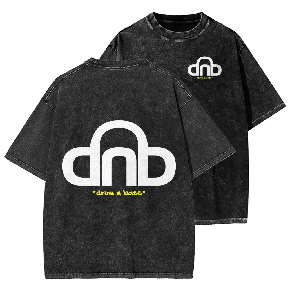 DNB Drum And Bass Front And Back Printing Washed T-shirt