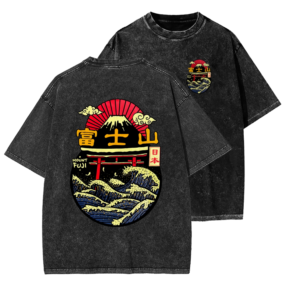 Mount Fuji in Tokyo, Japan Front And Back Printing Washed T-shirt