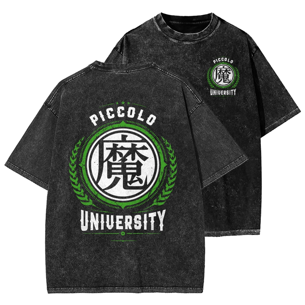 Piccolo University Front And Back Printing Washed T-shirt
