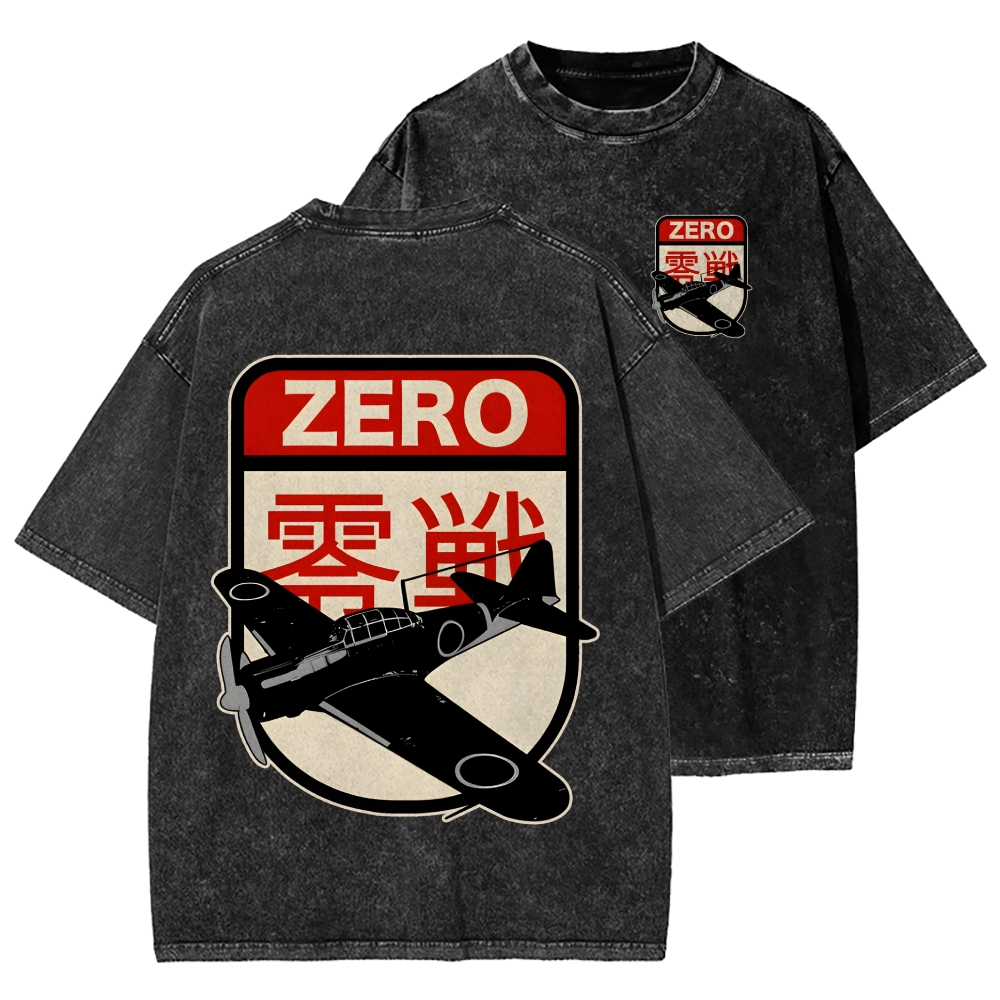 Zero Fighter Front And Back Printing Washed T-shirt