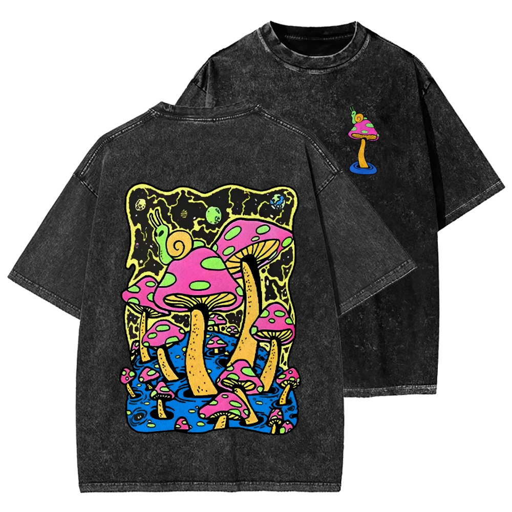 Psychedelic mushroom Front And Back Printing Washed T-shirt
