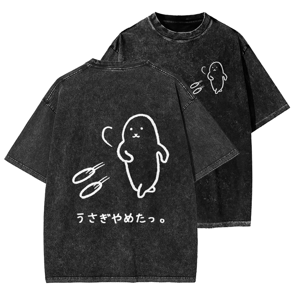 Usagi stopped Front And Back Printing Washed T-shirt