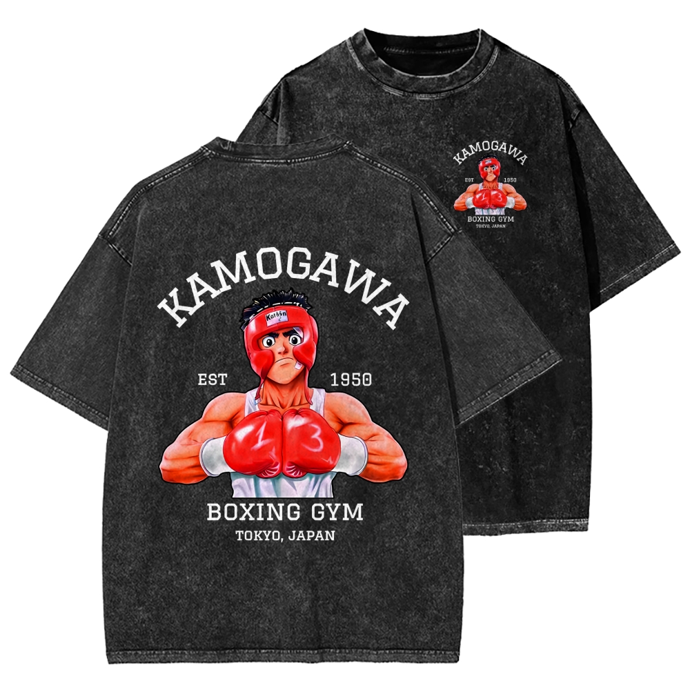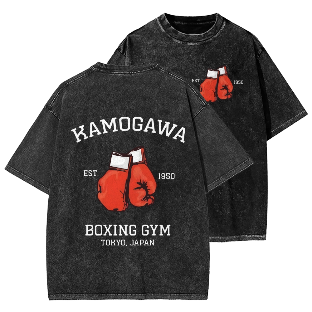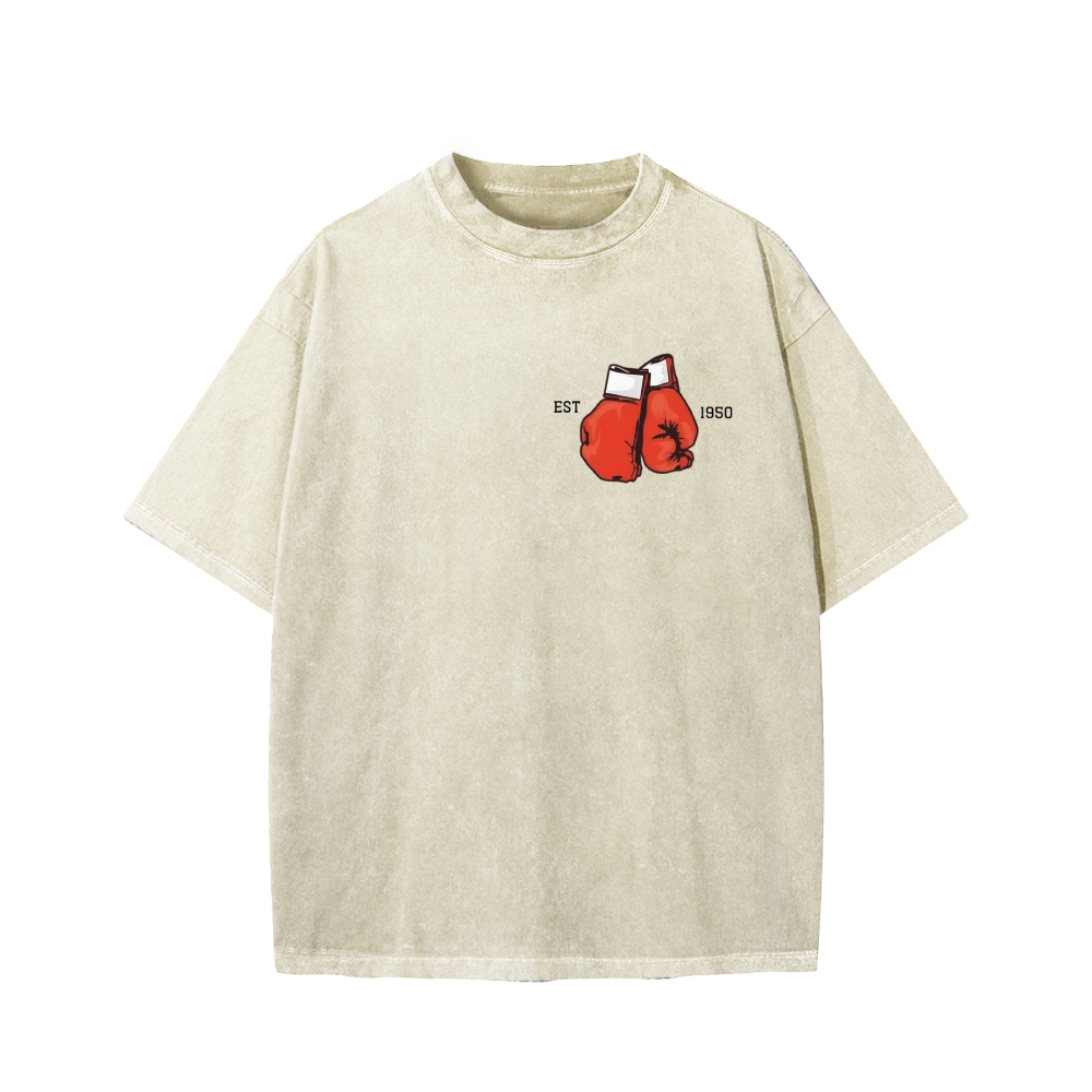 Retro Boxing Gloves Manga Anime Front And Back Printing Washed T-shirt