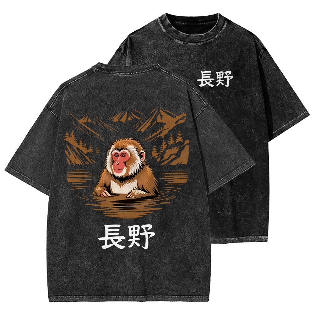 Monkey In Nagano Front And Back Printing Washed T-shirt
