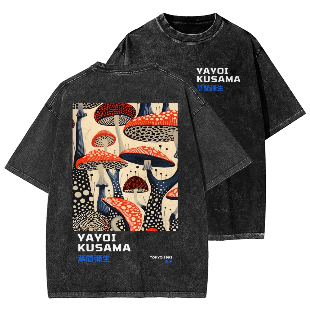 Yayoi Kusama Mushroom Vintage Wash Japanese Front And Back Printing Washed T-shirt