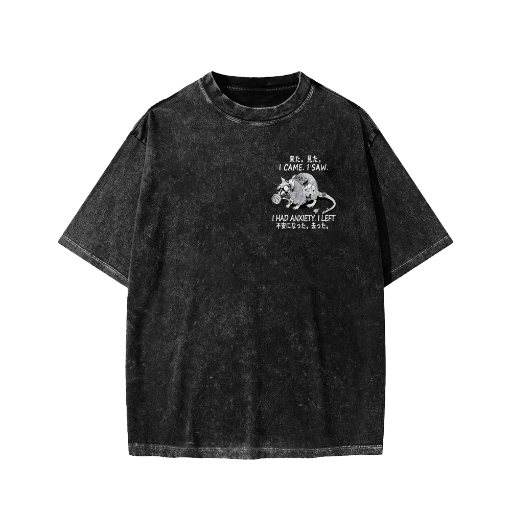 Anxious Mouse Front And Back Printing Washed T-shirt