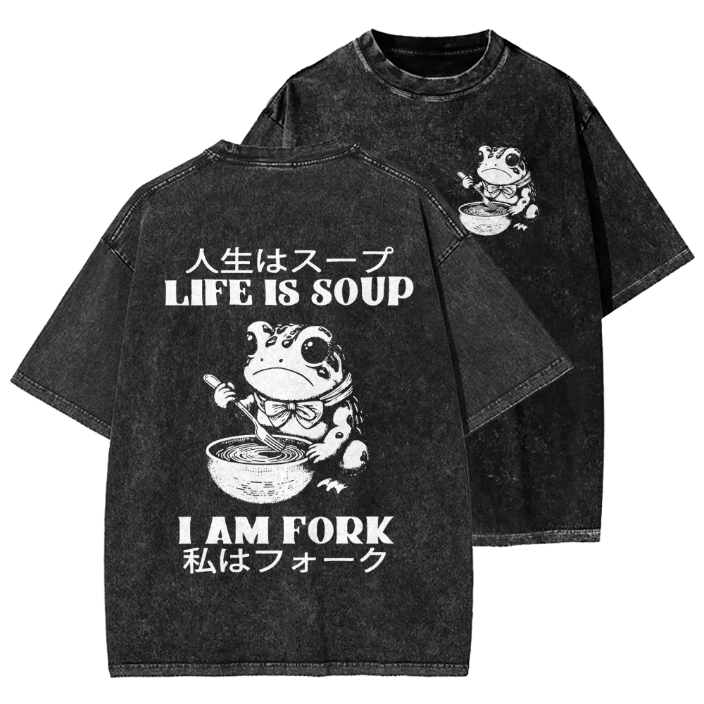 Life Is Soup I Am Fork Front And Back Printing Washed T-shirt