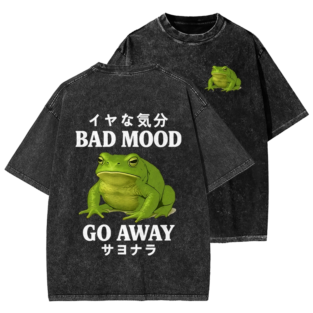 Am I The Drama Japanese Funny Frog Front And Back Printing Washed T-shirt