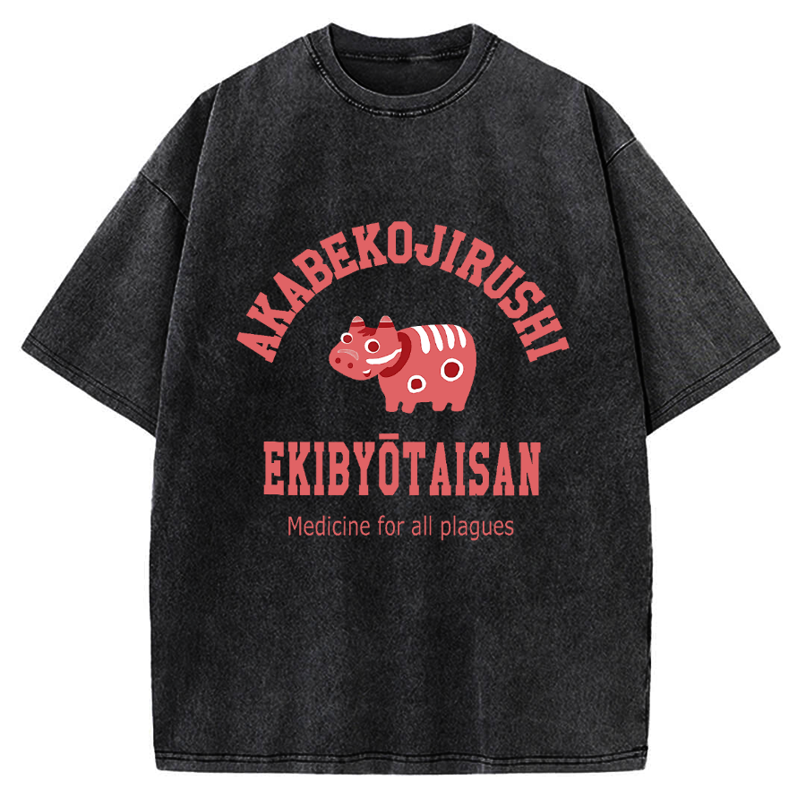 Akabeko Red cow Cure diseases legendary cow from the Aizu region of Japan Vintage Washed T-shirt