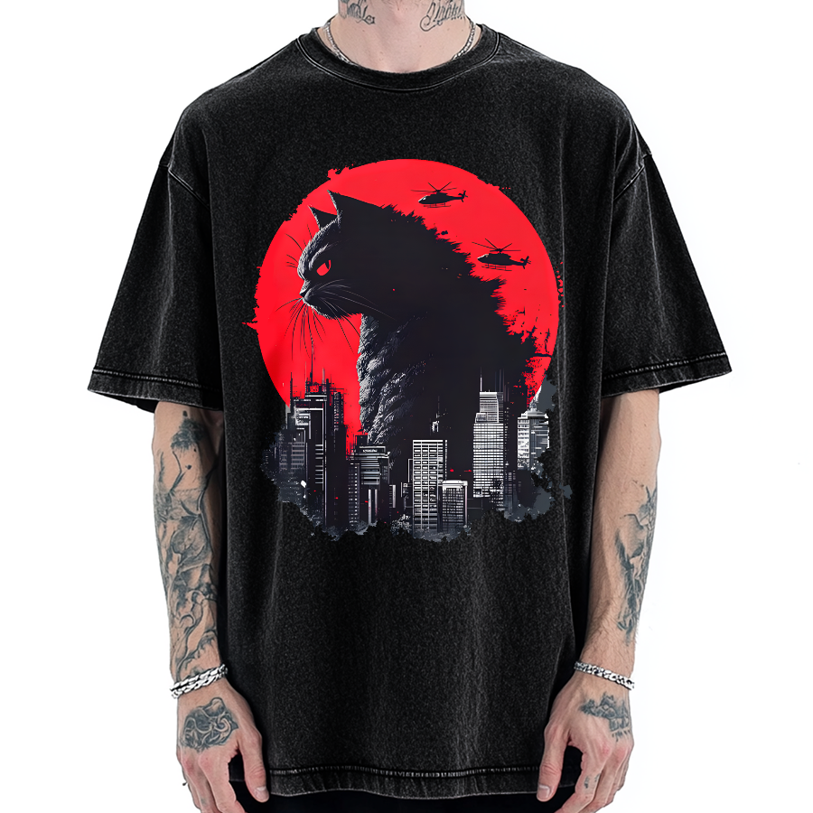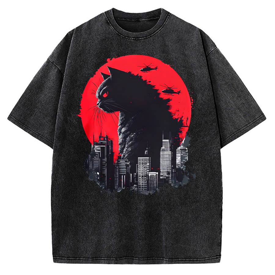 Catzilla Cat Japanese Art Funny Cat Vintage Washed T-shirt