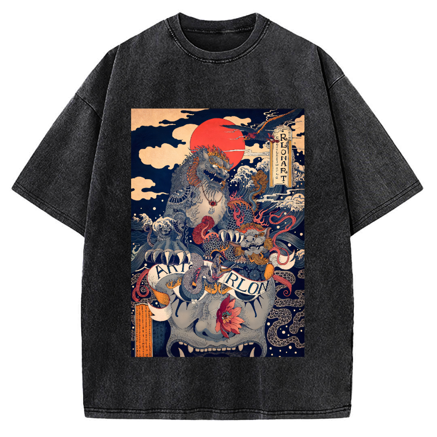 Japanese Monster Ukiyo-e Vintage Washed T-shirt