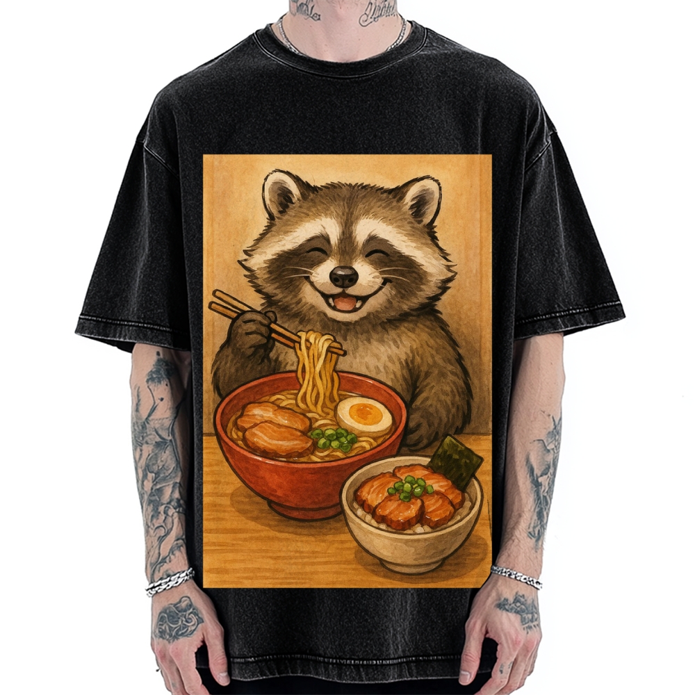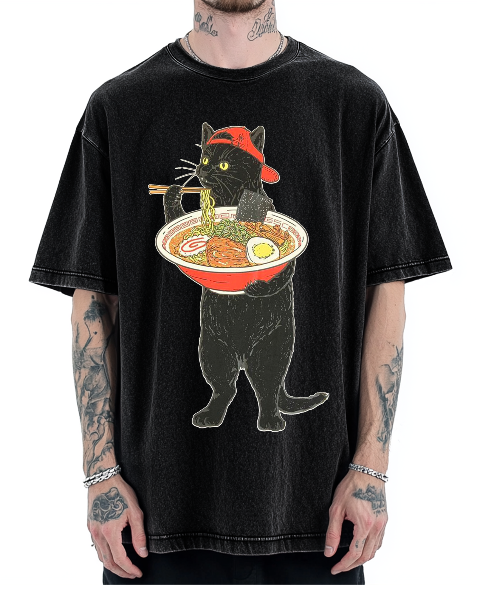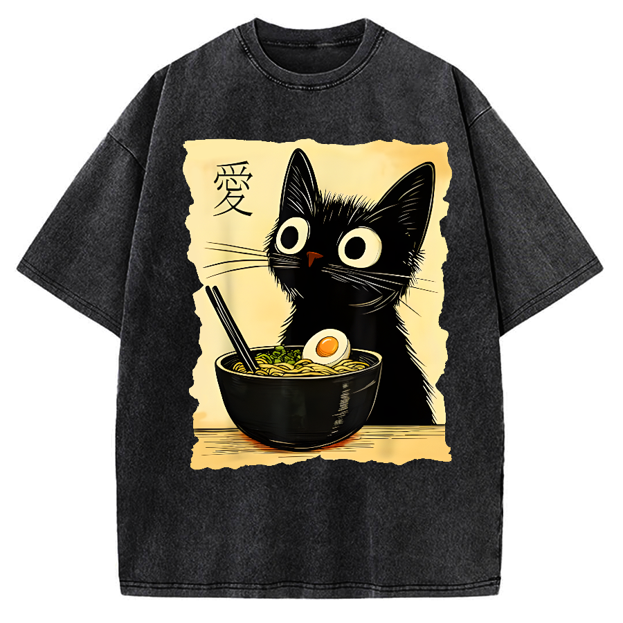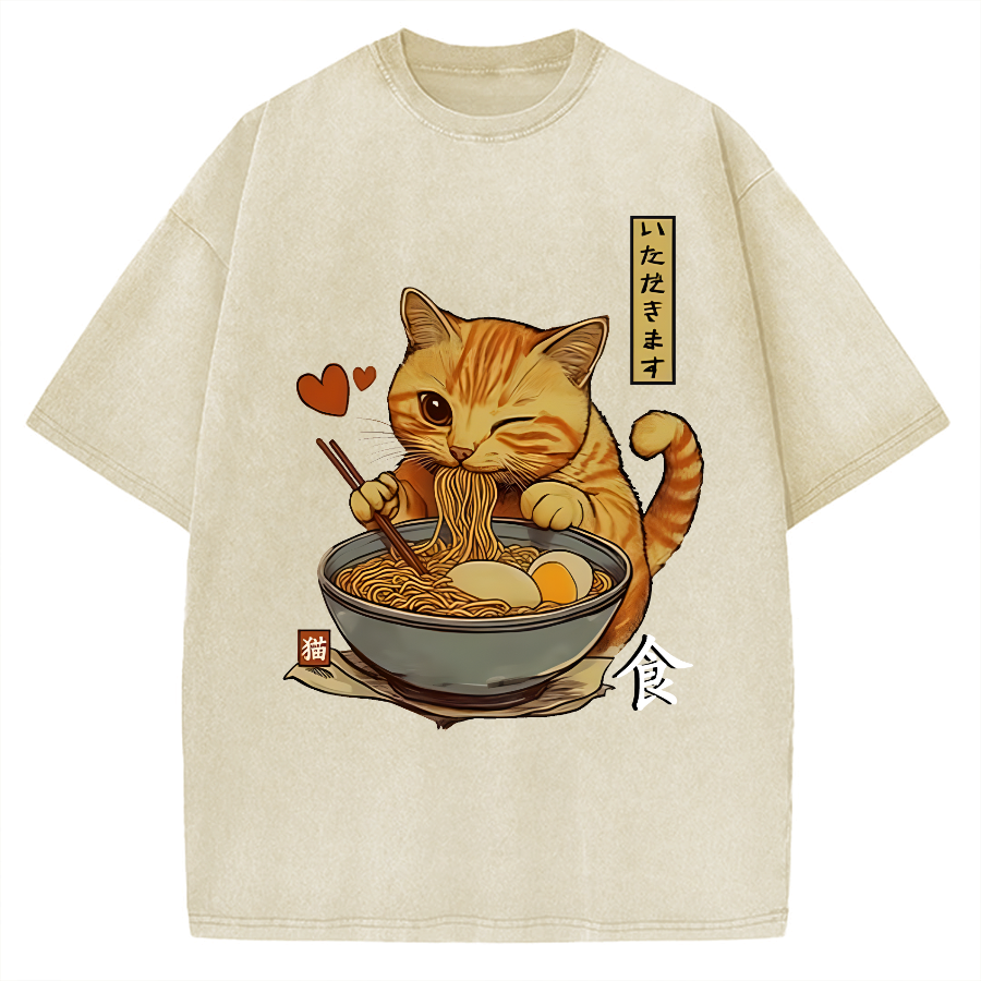 Funny Cat Ramen Graphic Japanese Vintage Washed T-shirt
