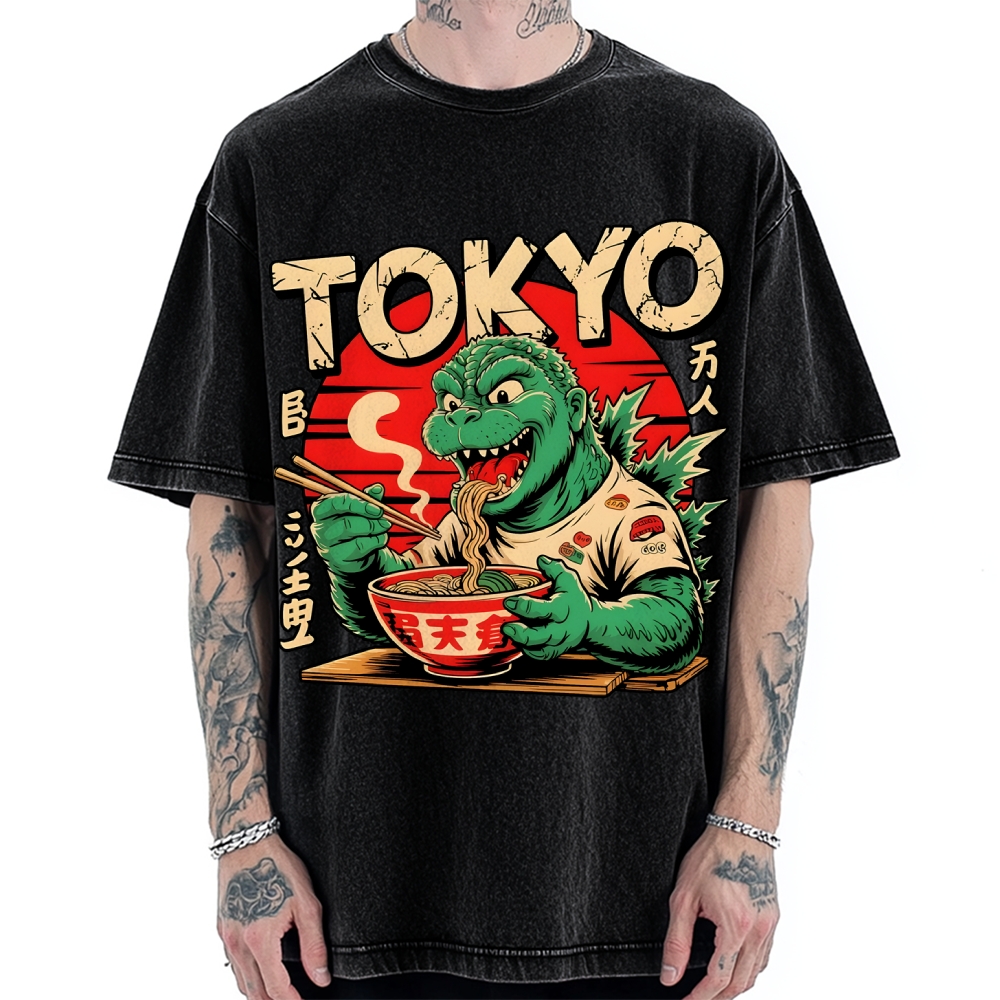 Tokyo Ramenzilla - Japanese Monster Eating Ramen Vintage Washed T-shirt