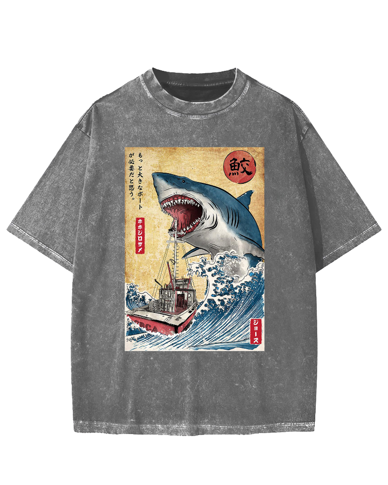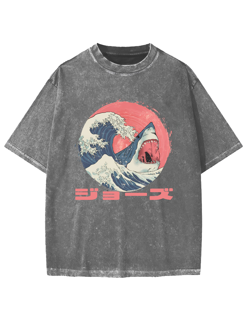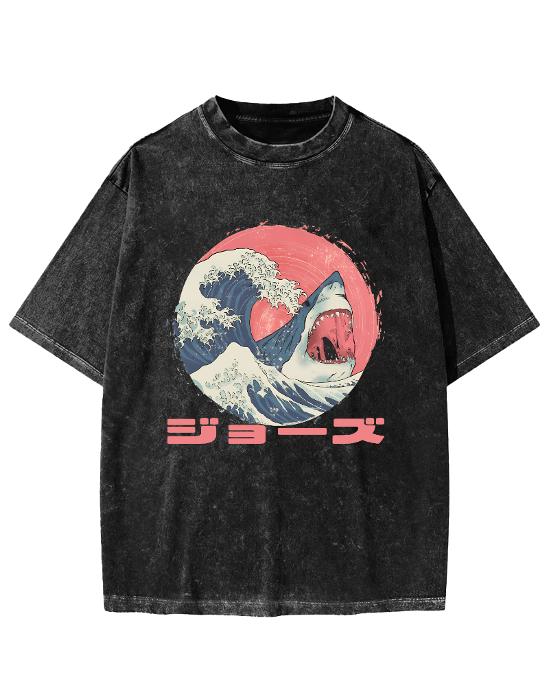 Japanese Manga Shark Anime Vintage Washed T-shirt