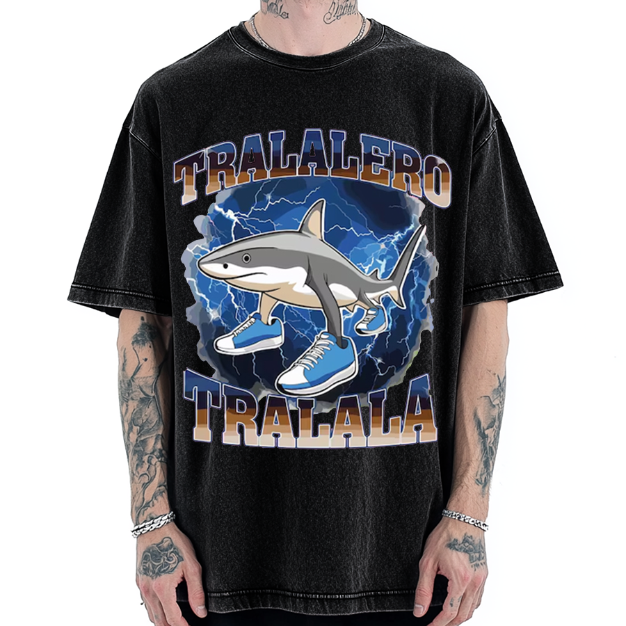 Tralalero Tralala Funny Shark Meme Vintage Washed T-shirt