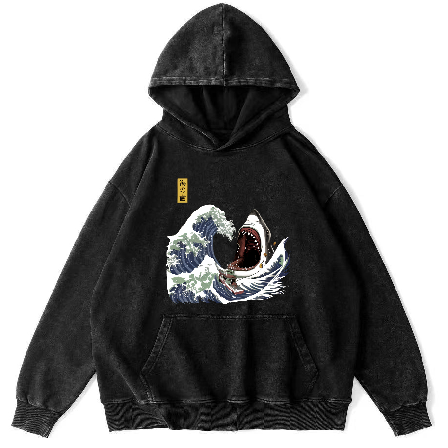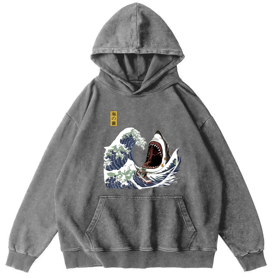 Hunting the Shark in Japan Front And Back Printing Vintage Washed Hoodie