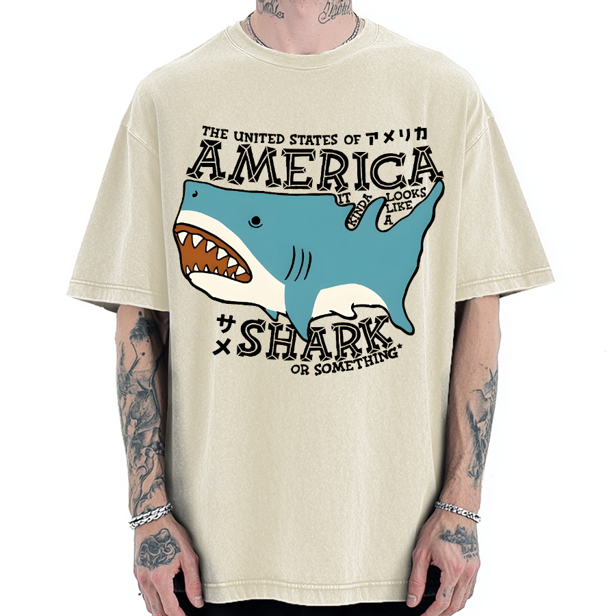 Japanese Shark Kawaii Vintage Washed T-shirt