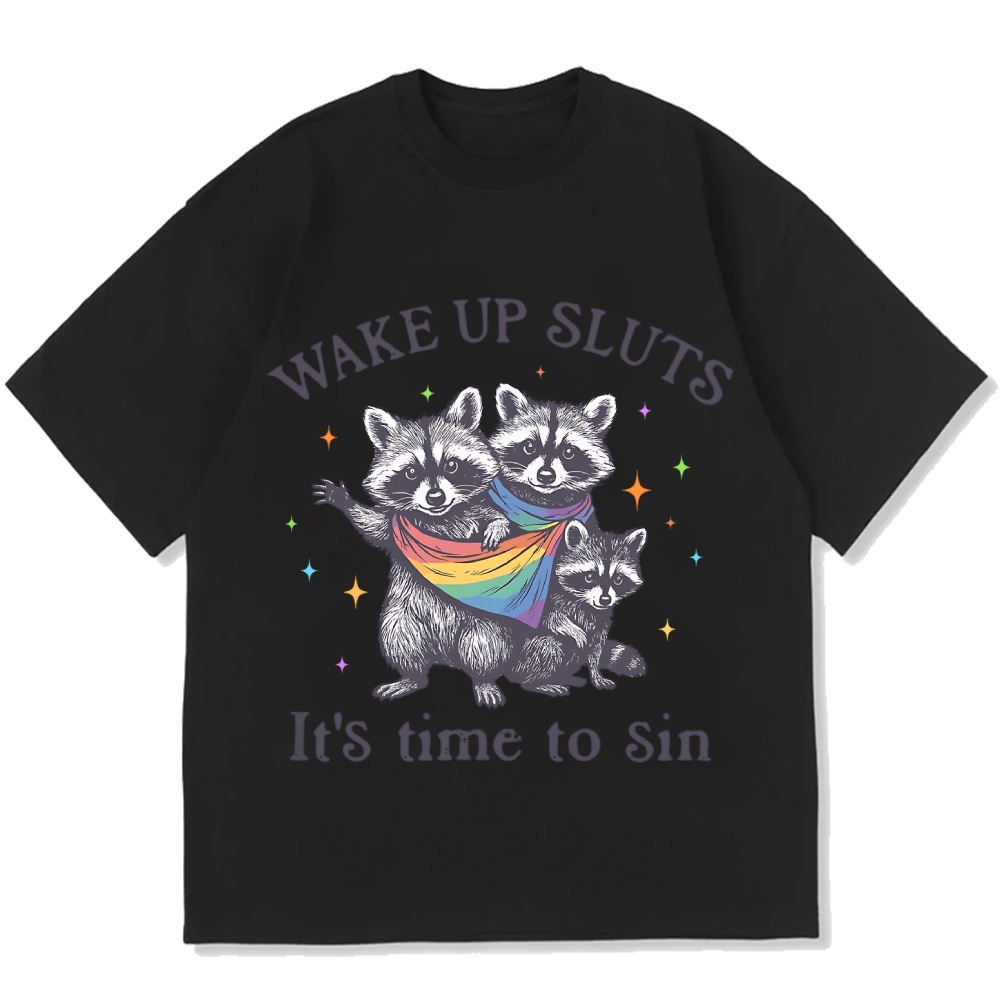 Wake up Cute Children's Drawings Cotton casual T-shirt