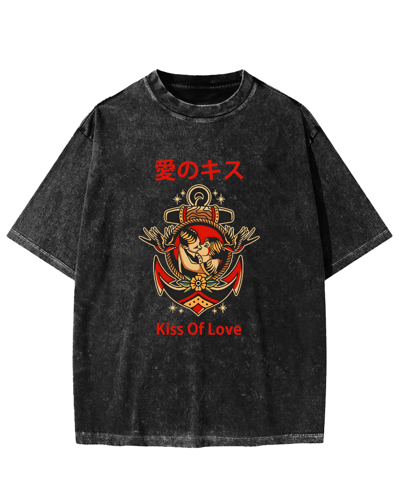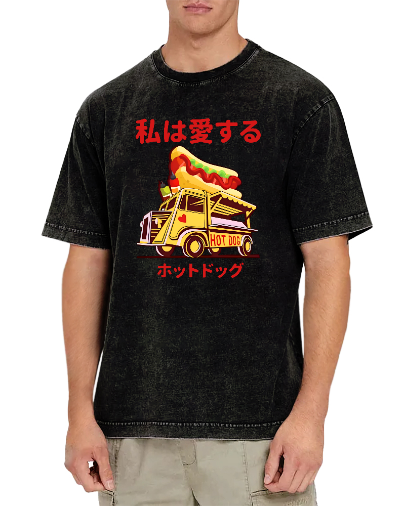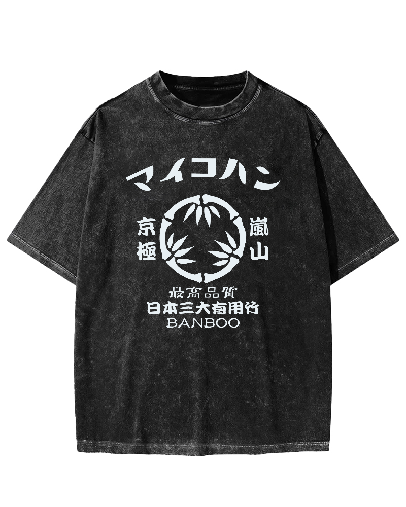 Japanese retro Chinese character locomotive Vintage Washed T-shirt