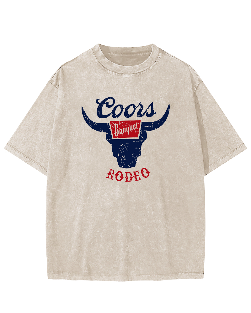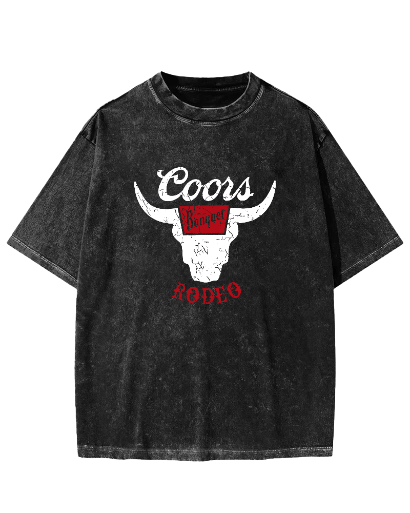 Bull Head Retro Style Vintage Washed T-shirt