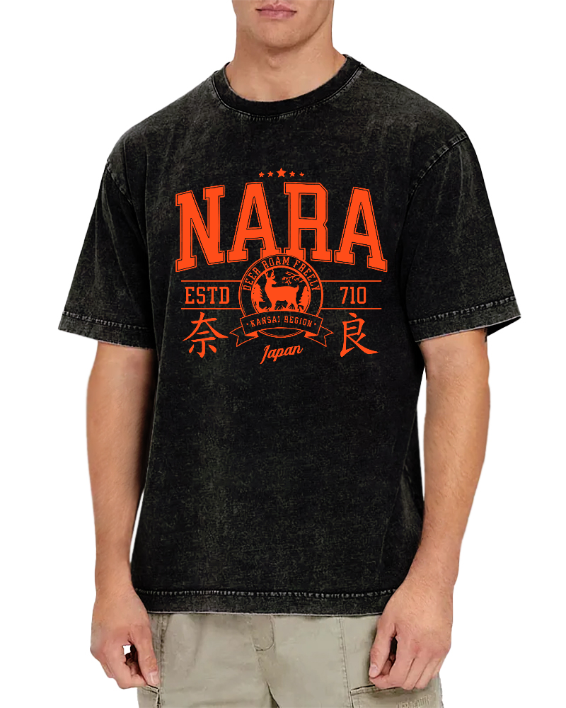 Nagoya City Retro Chinese Characters Vintage Washed T-shirt