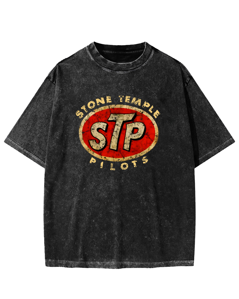 Shinjuku Stop sign Front And Back Printing Washed T-shirt