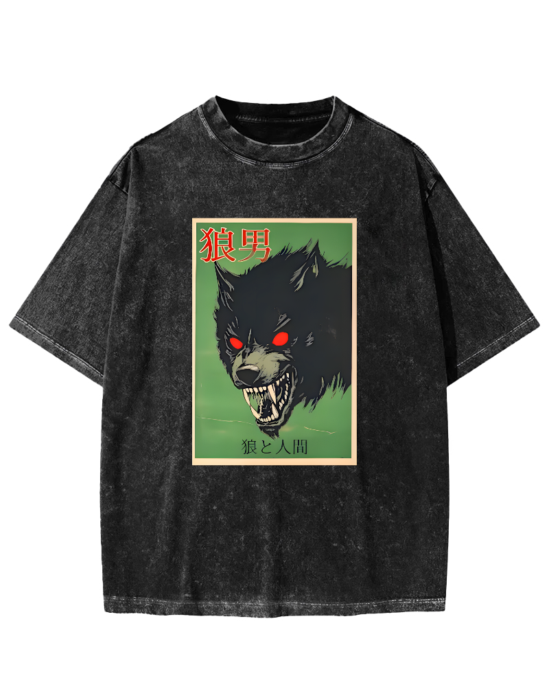 Retro Japanese Werewolf Vintage Washed T-shirt