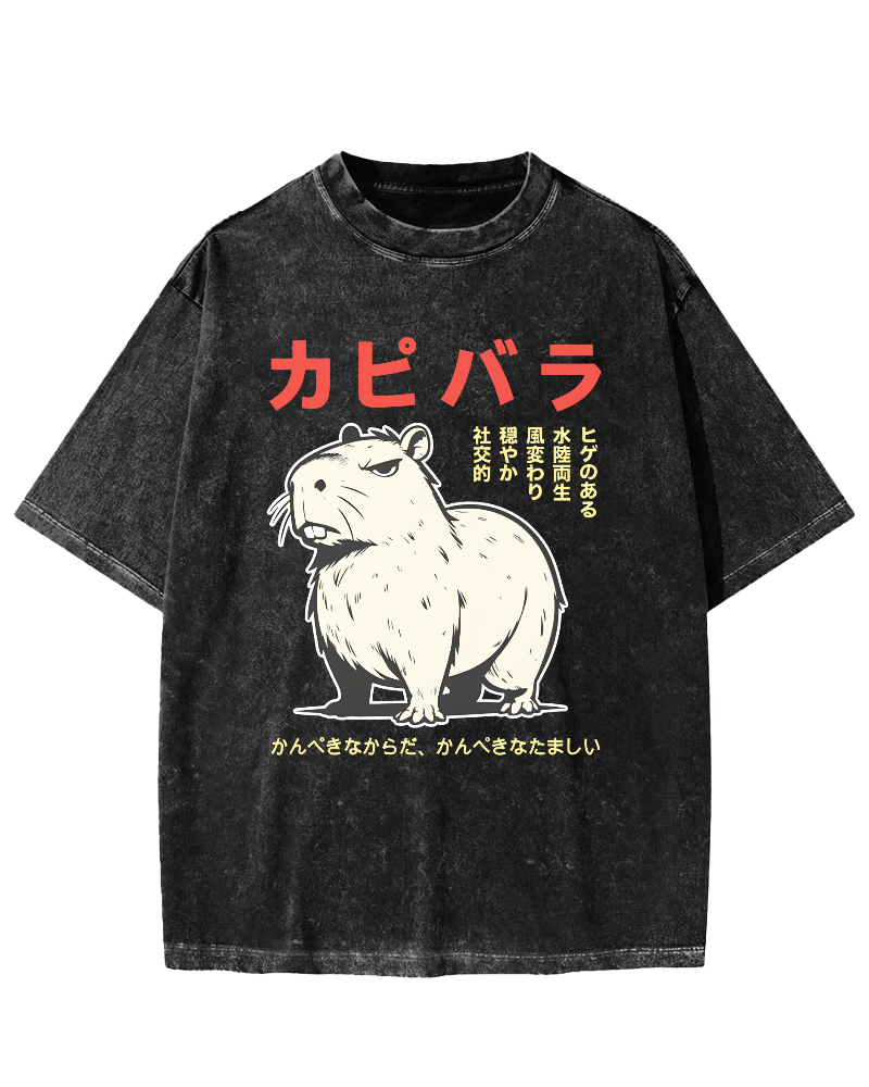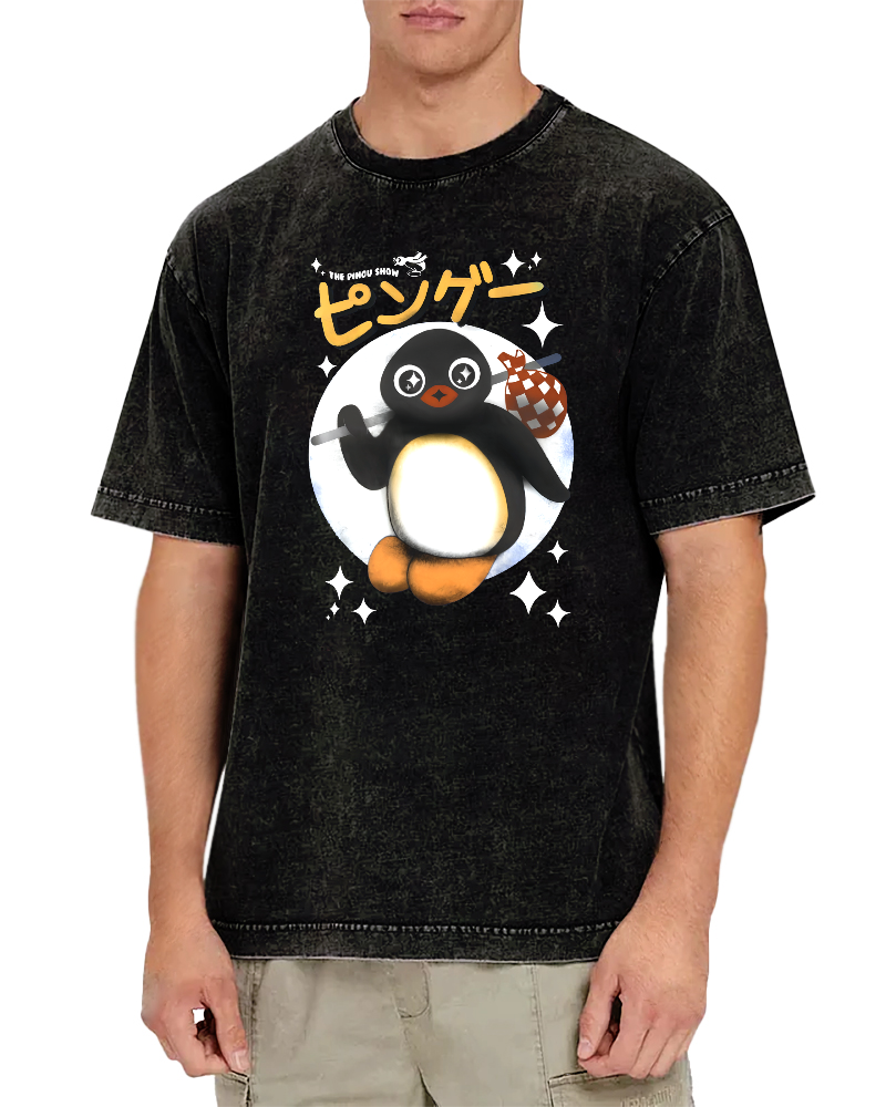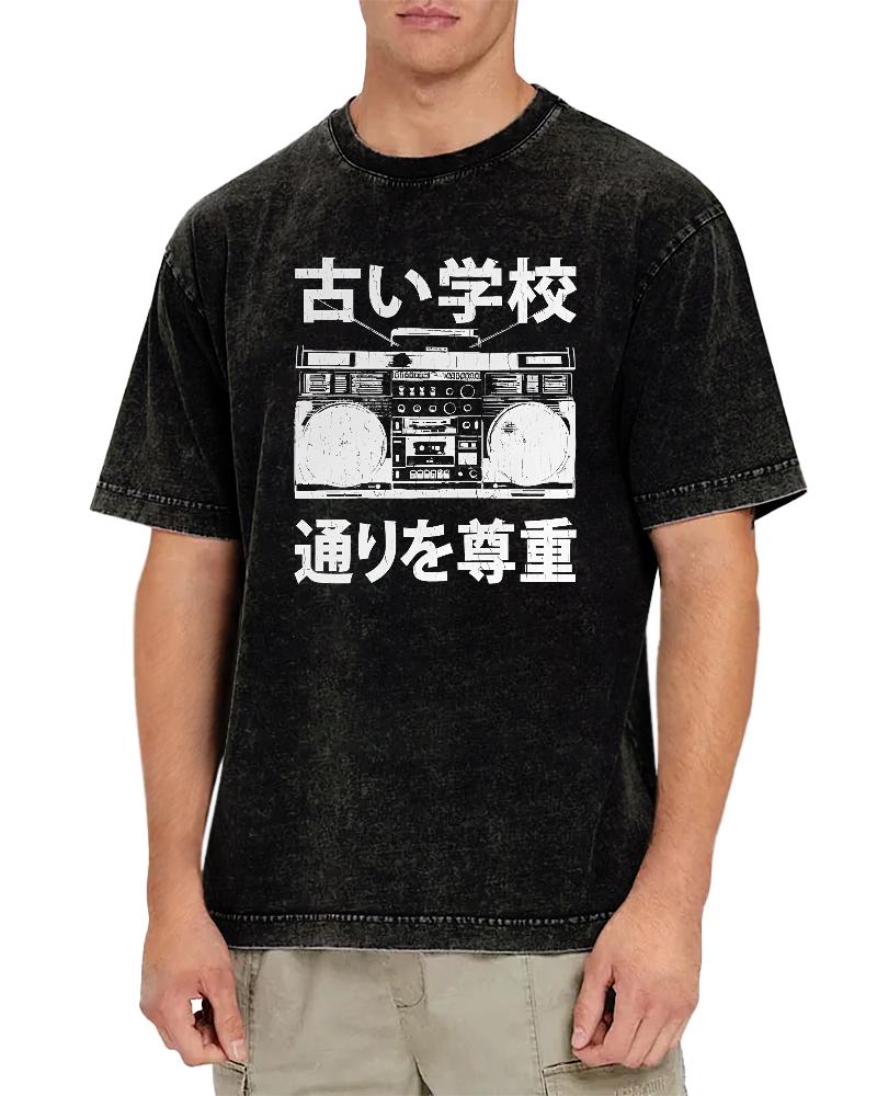 Japanese retro cute cartoon Vintage Washed T-shirt