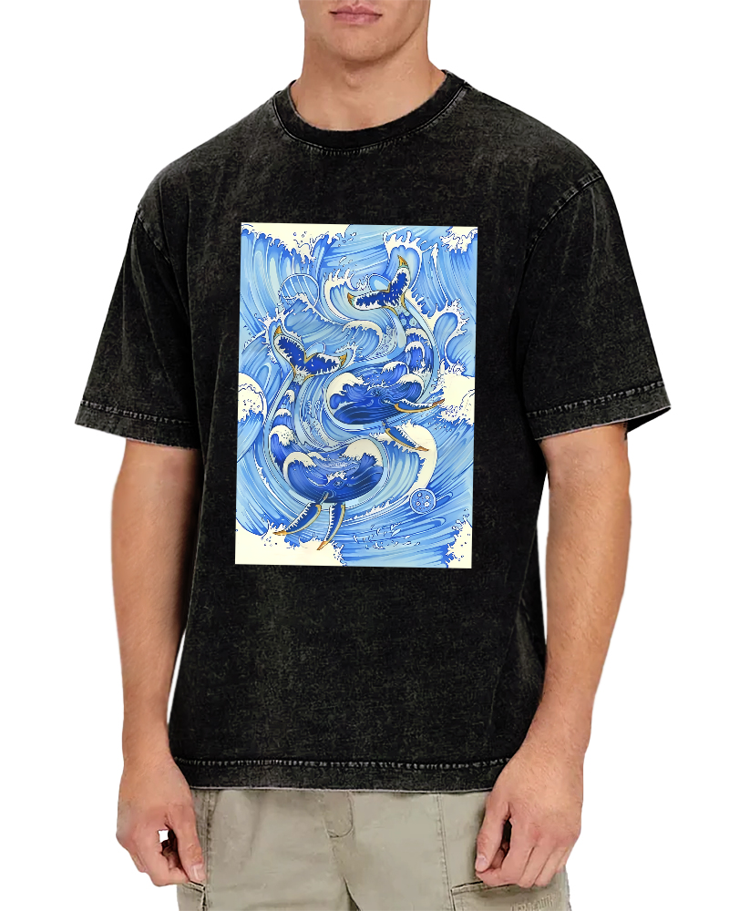 Shark Ukiyo-e in The Giant Waves Vintage Washed T-shirt