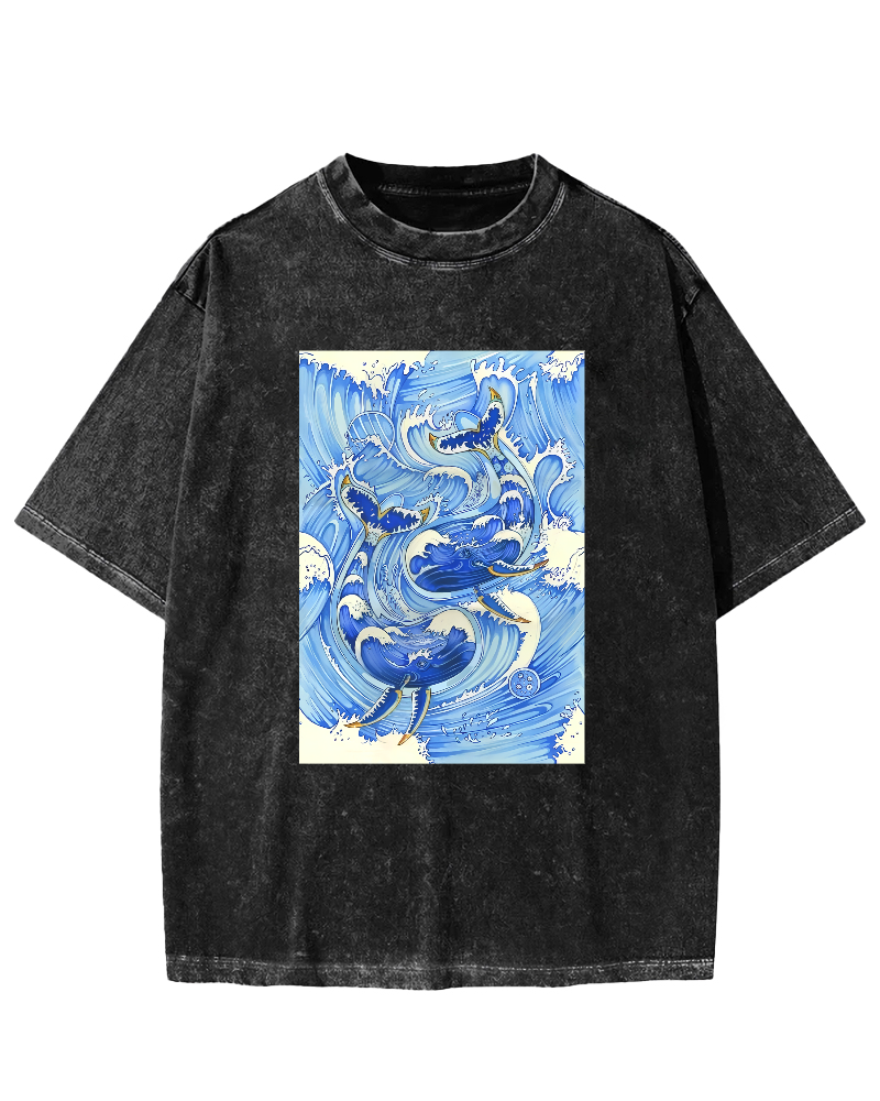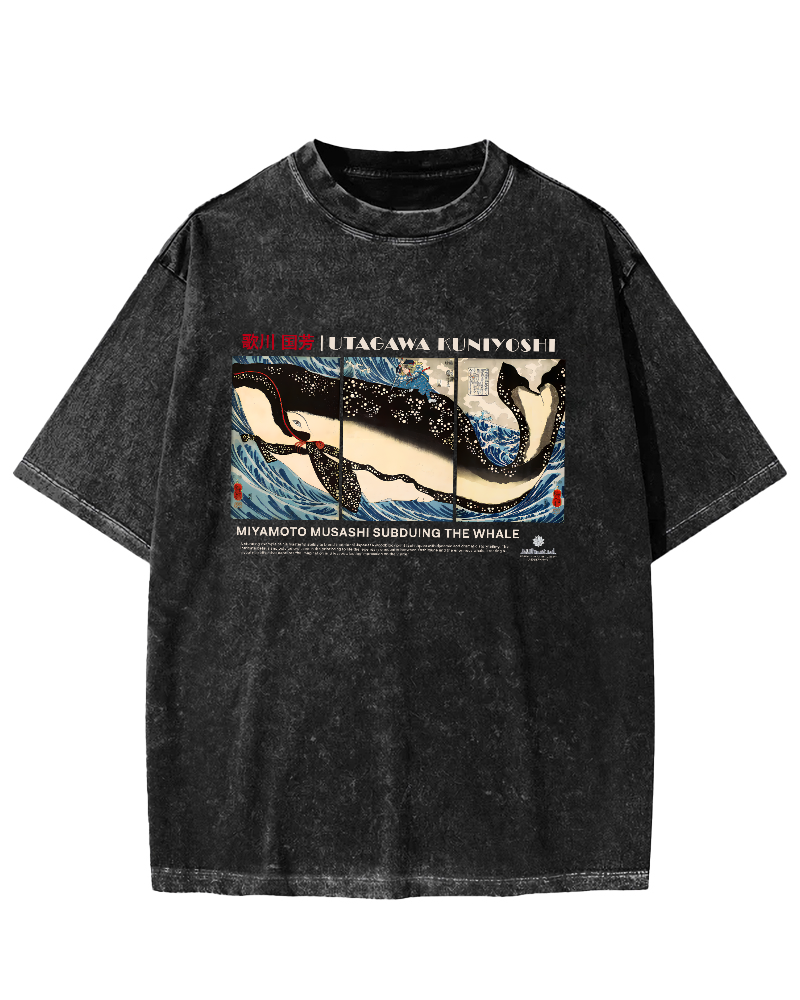 Kagawa Kuniyoshi Uniforms Whale Art Vintage Washed T-shirt
