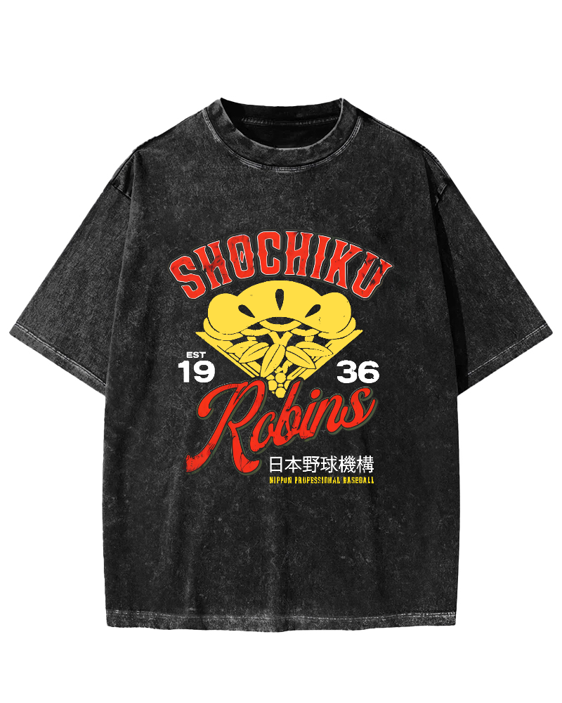 SHOCHIKU Japanese Baseball Retro Vintage Washed T-shirt